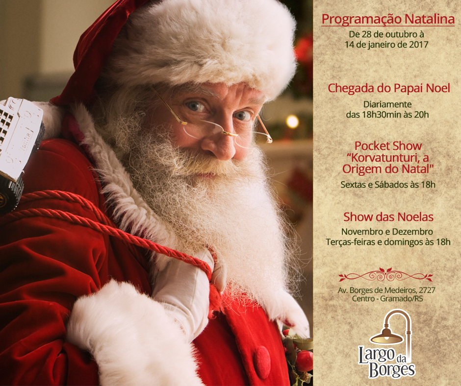 O Natal do Largo da Borges este ano está ainda mais lindo e cheio de novidades para vocês. A Chegada do Papai Noel acontece dia 28 de outubro às 18h30min, abrindo oficialmente a nossa Temporada Natalina.